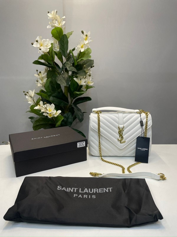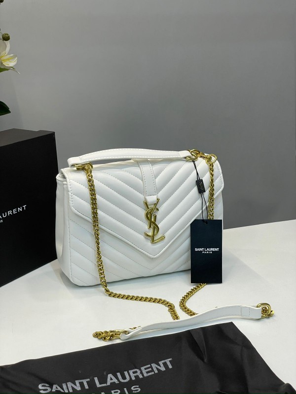 YSL SAINT LAURENT COLLEGE MEDIUM CHAIN BAG WHITE WITH OG BOX